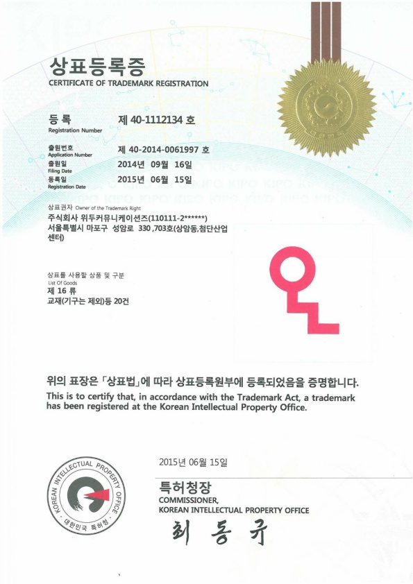 [Korea/Trademark] OLL 16 Class 페이지 정보 작성자 WeDu 댓글 0건 조회 5,618회 작성일 19-06-04 10:46 본문 2015-06-15 Trademark 40-1112134 16 Class List Previous[Korea/Trademark] OLL 09 Class 19.06.04 Next[Korea/Trademark] OLL 41 Class 19.06.04